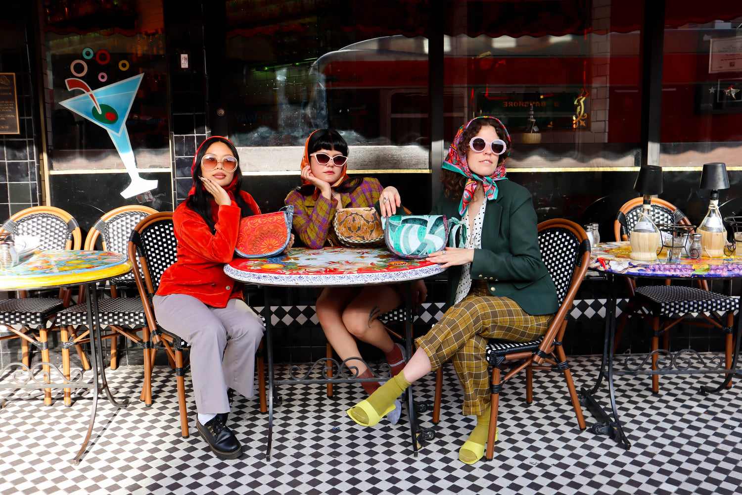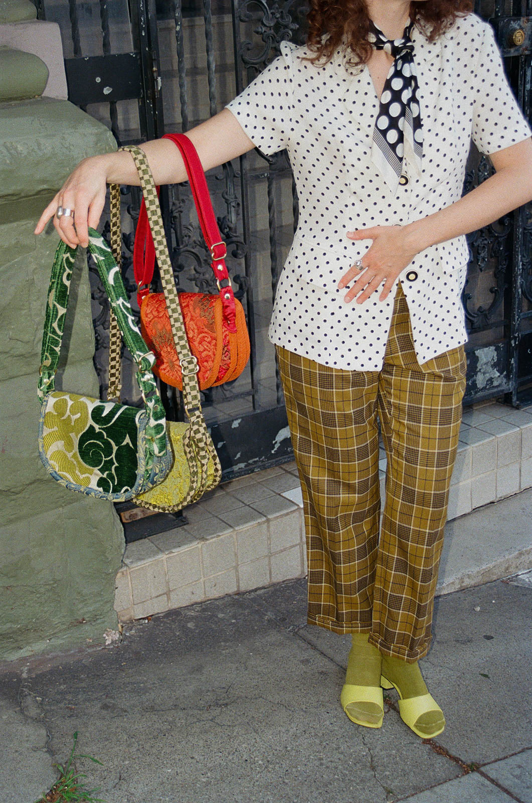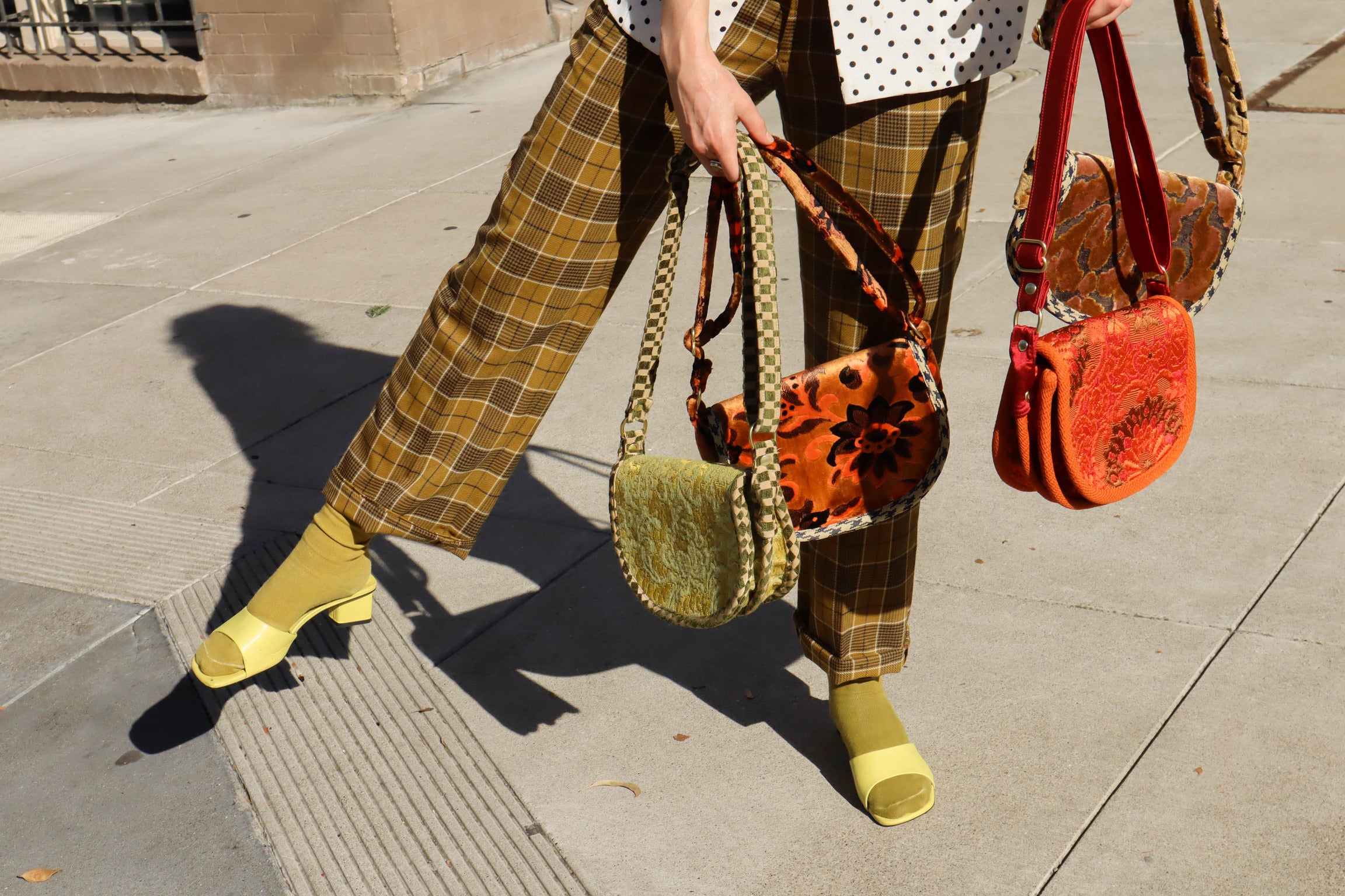 Fabrics are sourced from local shops in California. Seeking out fabrics that are bold, bright, colorful, retro, mod, weird & whimsical. All fabrics are dead-stock as well as some sprinkled in vintage fabrics from the 60's, 70's and 80’s