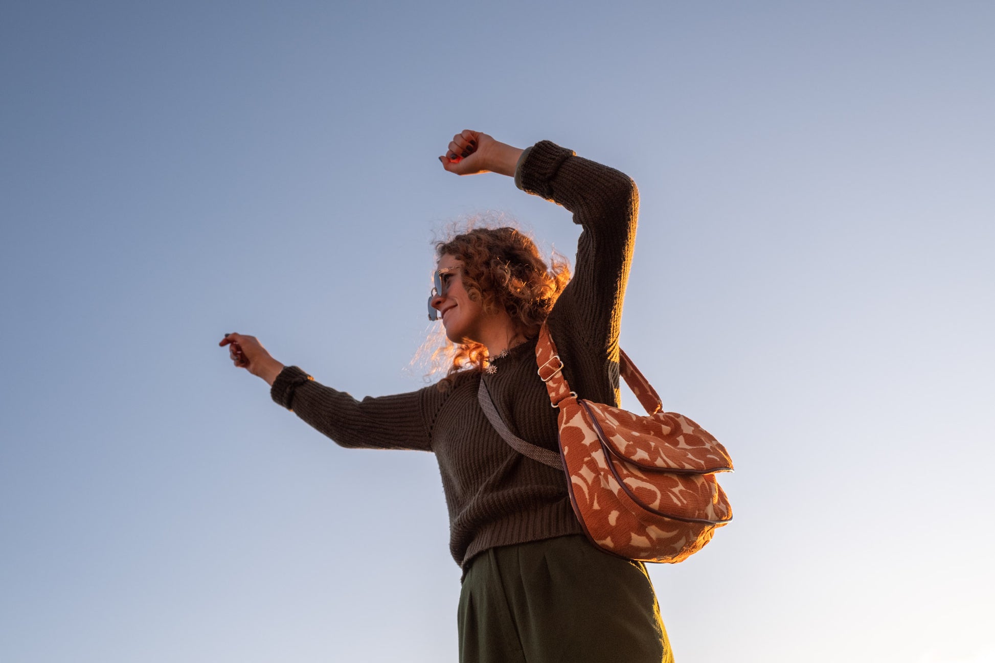 A medium size handbag with an adjustable strap, designed for effortless versatility. Wear her crossbody, sling her across your back, or shorten the strap to carry her as a shoulder bag.